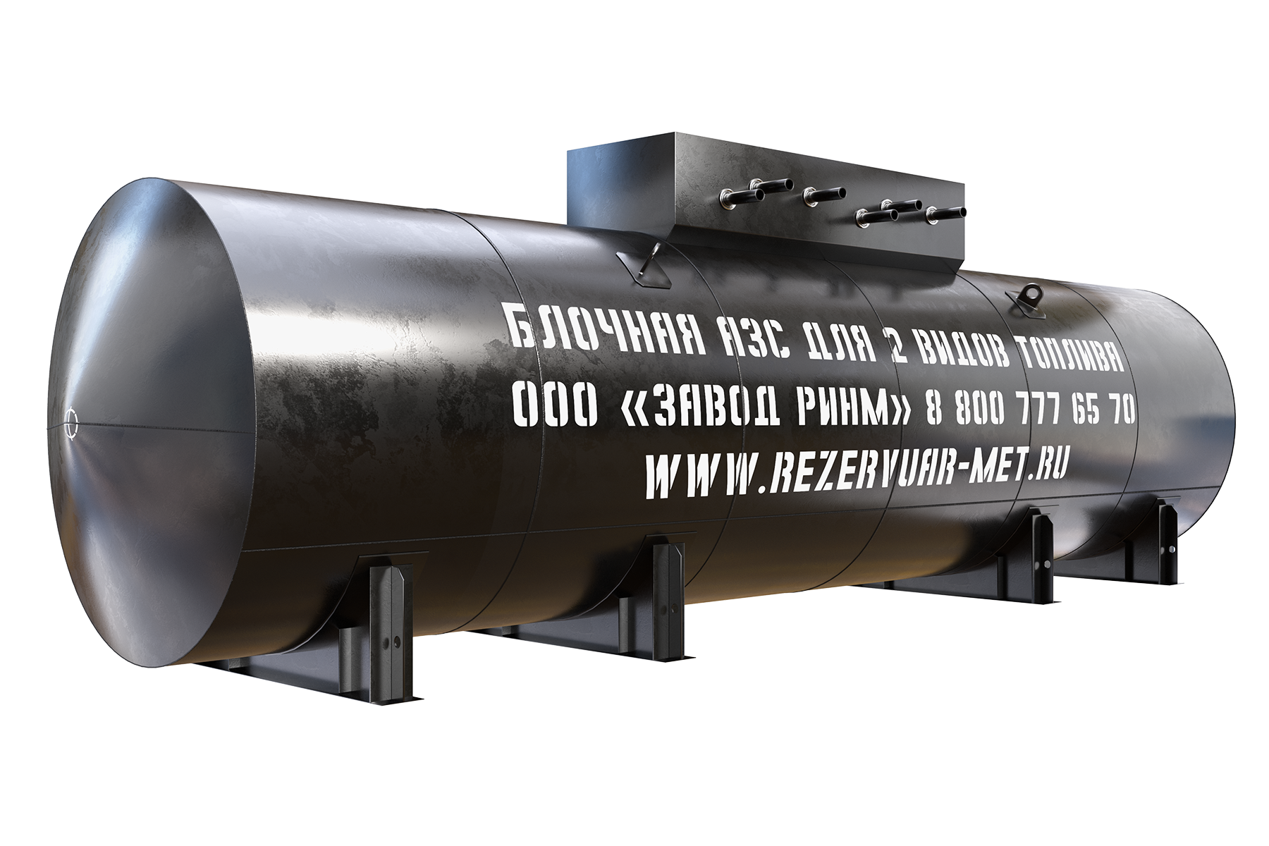 Двустенный резервуар блочной АЗС для 2 видов топлива изготавливают из стального листового проката по ГОСТ 17032-2010. Толщина стенки от 5 мм. Зазор между внутренней и наружной стенками от 4 мм, выдерживается с помощью приваренного профиля аналогичного сплава.